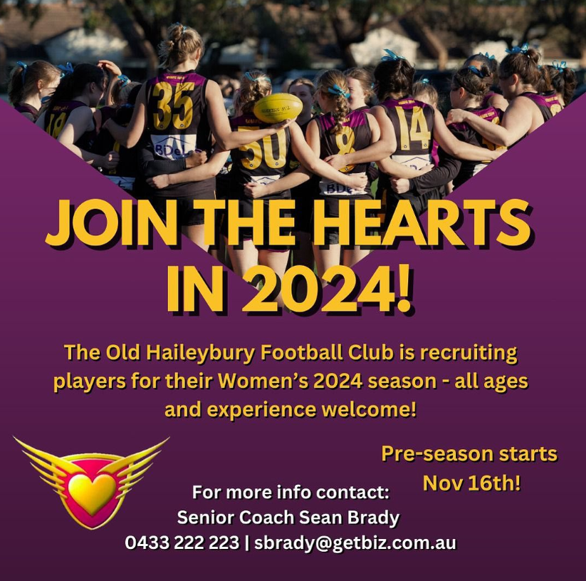 We competed in the VAFA's Men's Premier B and Women's Division 1 in 2024. Go Bloods and Hearts!