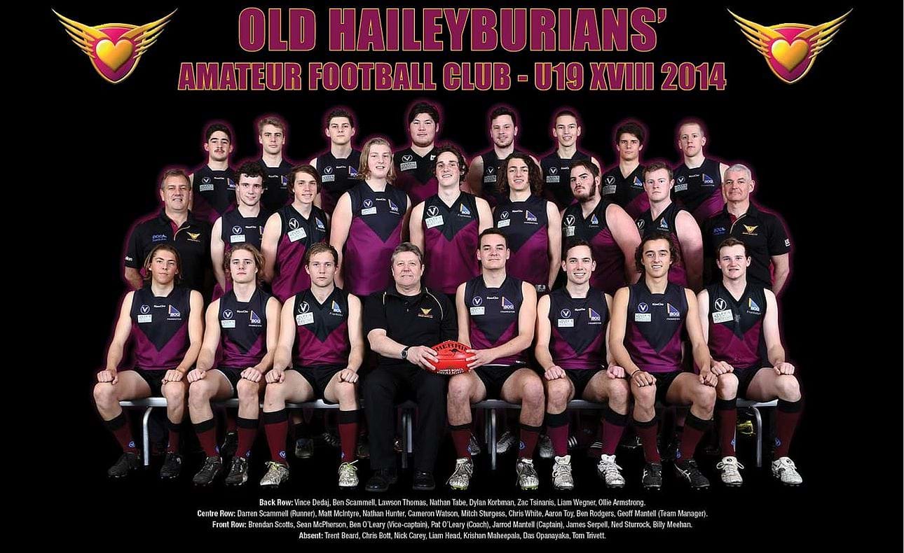 Senior captains (rear L-R) Adam Hilton 2000-01, Peter Mason 1975-76, Chris McKenzie 1993-96, David Connell 1997-99, Roger Gerny 1985, Matthew Armstrong 2002-04, Simon Meehan 1991, (centre L-R) Paul Corrigan 2005-06, Tony Brown 2010, Sam Langford-Jones 2007-09, John Houghton 1980, Darren Seccull 1988-92, Roger Paul 1977-83, (front L-R) Neville Schmidt 1984, Andrew Home 1961-71, Wayne Shand 1985-86, Peter Gadsden 1974