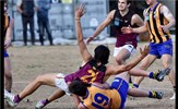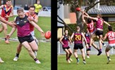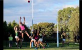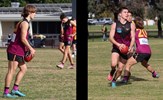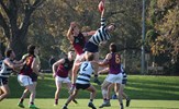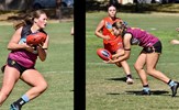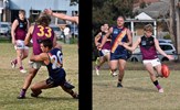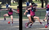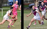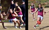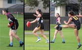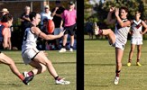 Tayllah Vines-Chapple on the turn while Kathryn Spencer (14) takes her kick against Old Mentonians