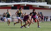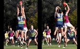 Durras Seccull flies high early in the game and Josh Gasparini breaks clear of the pack