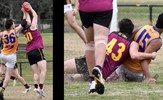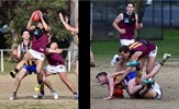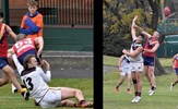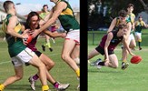 Emilio Bitters is free, but Rayner Seccull braces himself, caught up in a tackle