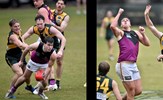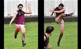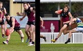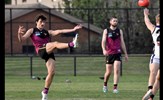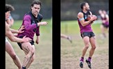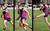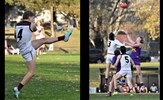 In the break between Rounds 12 and 13, Oilli Hotton (seen here kicking and celebrating a goal) and Brede Seccull represented the VAFA Senior representative team that played the Perth Football League