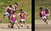 Brede Seccull (5) tackles before Harry Whitty (7); Jack Bell (17) marks and Corey Connelly (12) awaits the crumbs