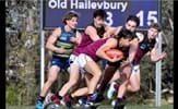 Will Paul (29) marks over Rohan Heasley (57), Dino Karamoshos (11) and Lachie Treverton (30); James Paul on the run