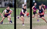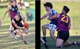 Castan Racunica in posesssion, Riley Thompson tackles with Lachie Riley behind