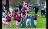 Durras Seccull (14) beats all challengers to mark strongly, including William Gown (21) and Jack Bell; Liam Kirkwood-Scott and Ollie Sharpe ensure their opponent is going nowhere