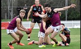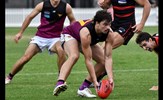 James Paul backed up by Cody Goonewardene; ruckman Ethan Hardeman struggles to handball away