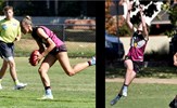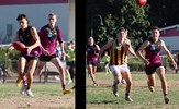 Holly Treverton fends and Carly Dillon just gets her kick in