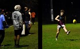 Recruit Dino Karamoshos boots forward as Brodie Steele directs from behind