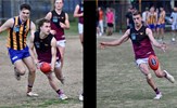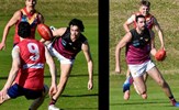 Max Walstab, Liam Wood and ruckman Ethan Hardeman in action for the Reserves in the final round of the season played on Keysborough's Rendall Oval