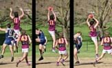 Ruckman Jack Bell boots forward and Raynor Seccull makes a spectacular fly