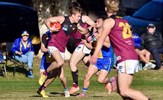 Lachie Treverton marks as Sam Loewe gets his kick away