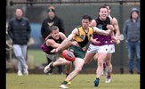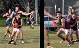 Action from the Reserves' Round 2 match against Old Carey as Cooper Wenck takes possession and Sam Algeri gets his kick in ahead of Scott Ellis