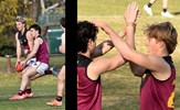 Jayce Morgan jumps for a chest mark, Max Sievers (10) on the ground