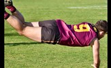 Rayner Seccull gathers and handballs