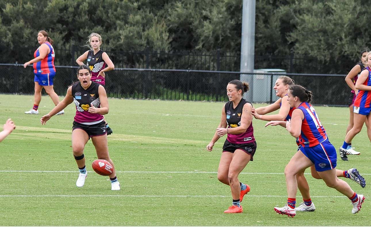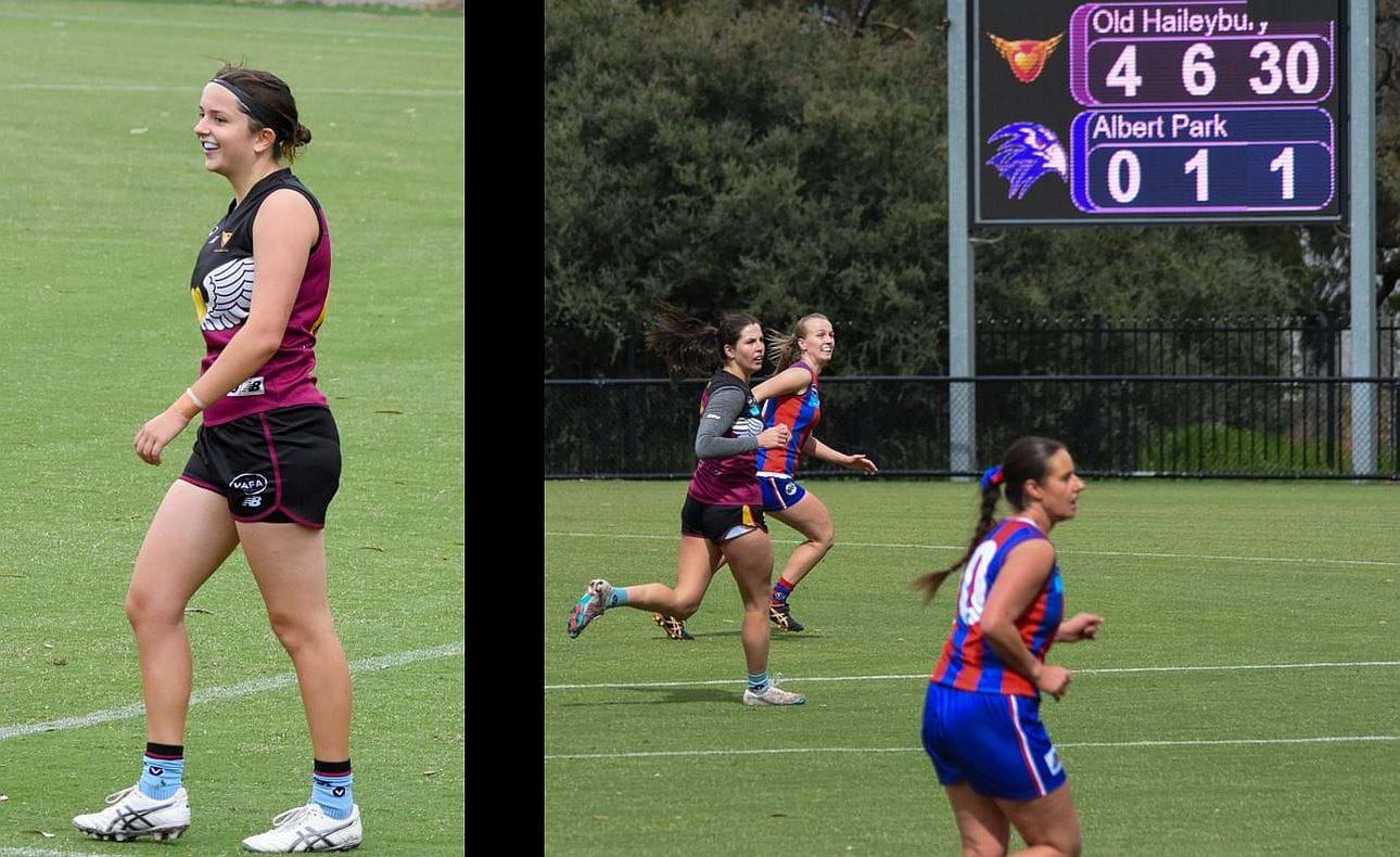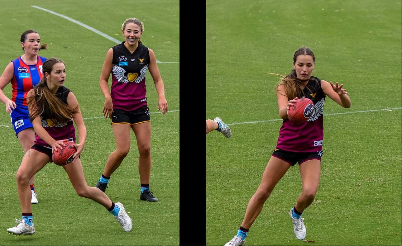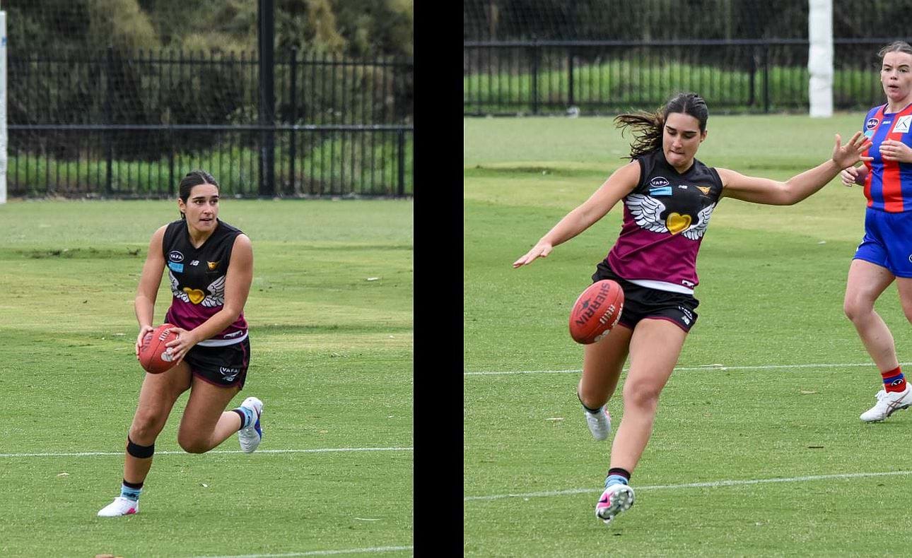 Kicking away are Pulli Gardiyawasam and Leesa Guastella