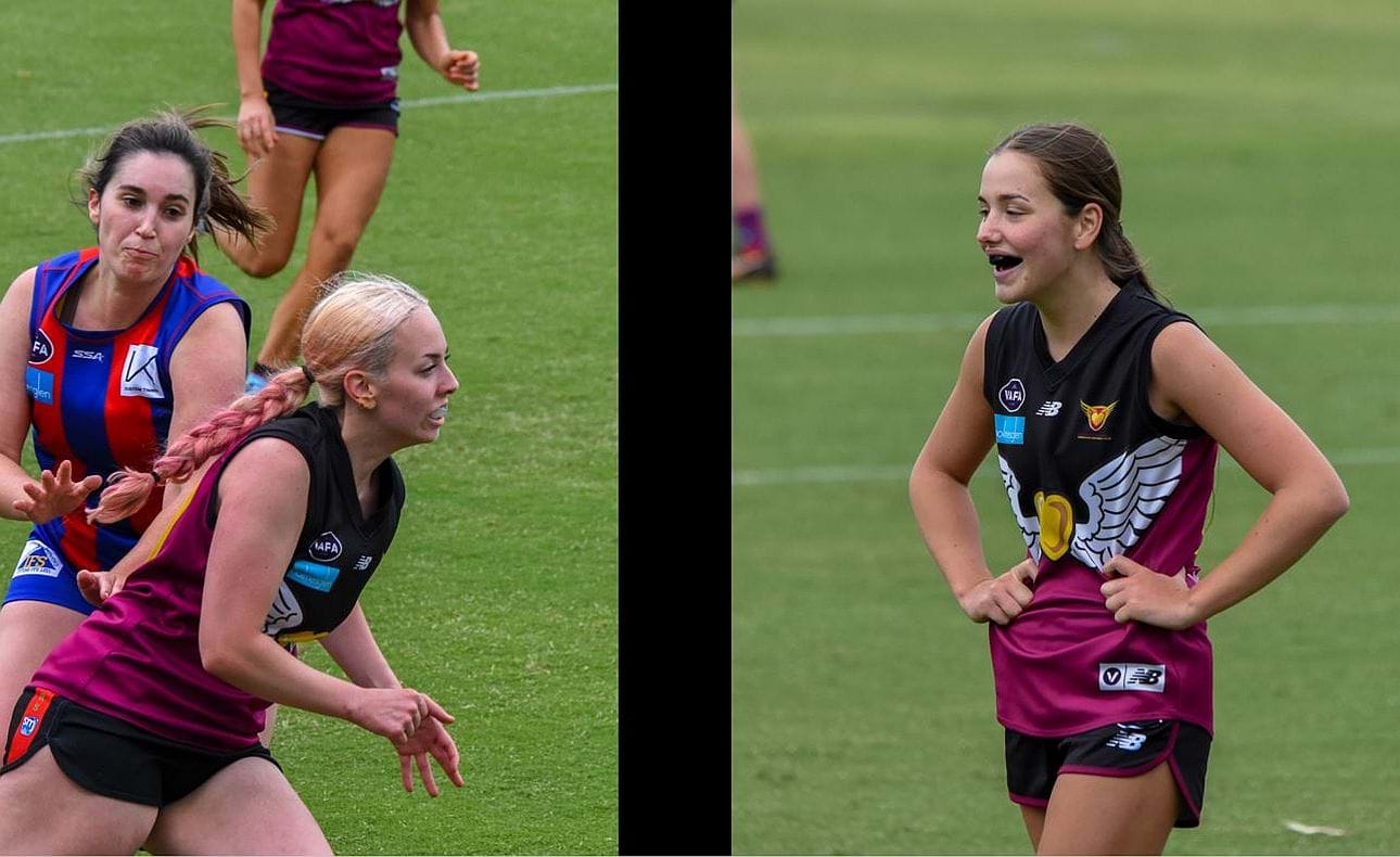 Ivy Compton and Eliza Main in action for the Hearts in their match against Therry Penola